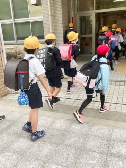 今日は、2年生が長居公園に出かけます。リュックサックにお弁当を入れて、ウキウキした気持ちで「おはようございます!」