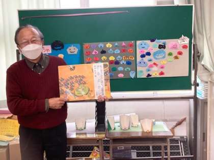 学校図書館司書の小前先生がお越しくださっています。今日、子どもたちに読み聞かせてくださる絵本です。