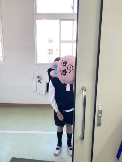 お昼休みの時間、ドアのかげから、あのピンクのぬいぐるみがひょっこり顔を出しました。またまた、投稿者は笑いのツボにはまりました。これで、昼からも、一笑懸命がんばれそうです。子どもたち、いやしをありがとう。
