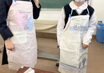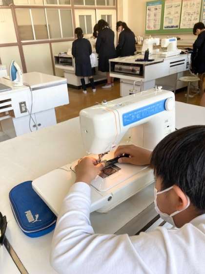 中・下 2組 家庭科 エプロンを作ろう
