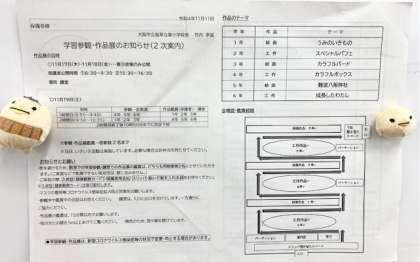 今日子どもたちに、プリントをお配りしました。来週の17日(木)〜19日(土)は、作品展です。19日(土)は、学習参観も行います。