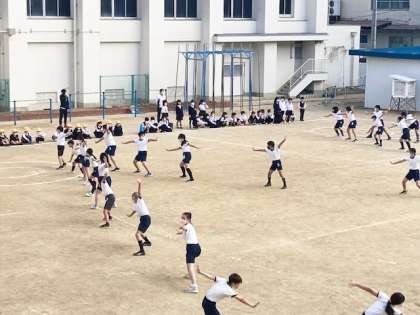 南中ソーランを1年生に披露しています