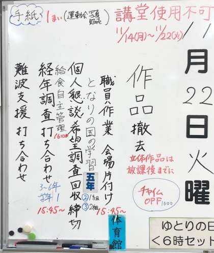 皆さん、おはようございます。土曜日の学習参観と作品展では、たくさんの方にお越しいただき、ありがとうございました。