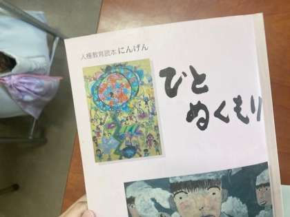 同和教育主担の西川先生が、太鼓についての授業をすすめています。