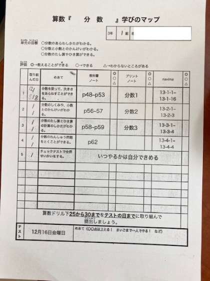1組 福田先生が算数の公開授業をしてくださいました。自分にあう方法や手順、時間を選びながら、目標に向かって学びを進めます。