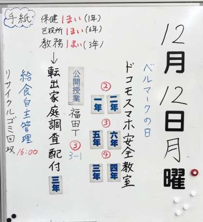 今日は、すべてのクラスで、NTTドコモによるスマホ安全教室を行います。スマホなどの便利なツールを、だれかを傷つけるのでなく、安全に正しく使えるよう、ご家庭でもお話しくださればと思います。