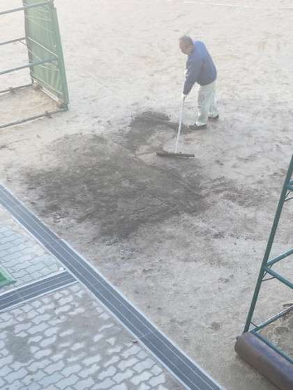 管理作業員の日野さんが、運動場の整地をしてくださっています。