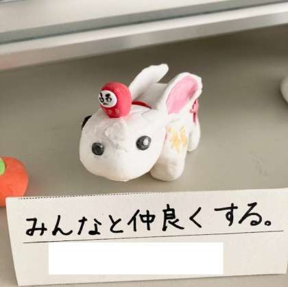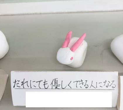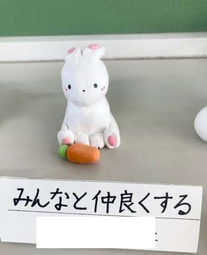 6年生が作った来年の干支の置物です。できばえもかわいいですが、そこに添えられたひとことが、心に響くんです。