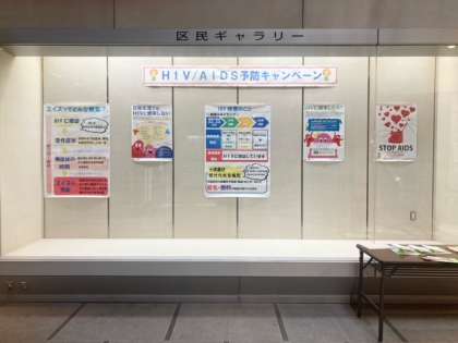 今日の夕方、打ち合わせで区役所を訪れました。すると、1階ロビーに、エイズに関わるディスプレイを発見しました。