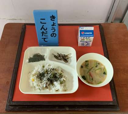 きんぴらちらし、ぞう煮、ごまめ、牛乳 です。