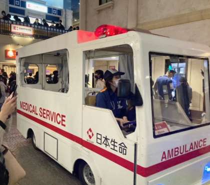 たくさんのパビリオンやイベントがあります。救急車も、きました。