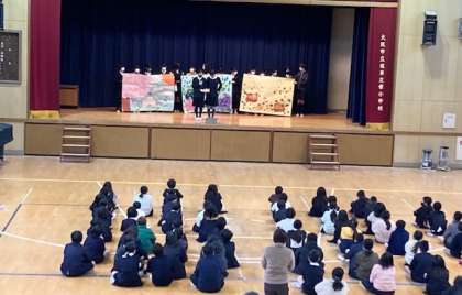 今朝、児童会の主催で、委員会活動の紹介を行いました。4年生と5年生の子どもたちが、4月からどの委員会活動に所属するかどうかの参考になりました。上から、環境、掲示、図書委員会の発表です。