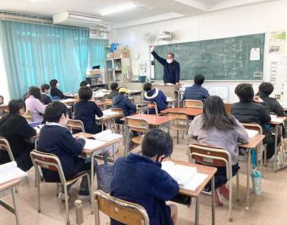 2組 国語 資料を見て考えたことを話そう 子どもがプレゼンをしています