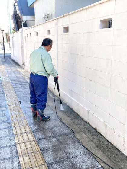 管理作業員の日野さん。学校周辺の壁や側道をきれいにしてくださっています。