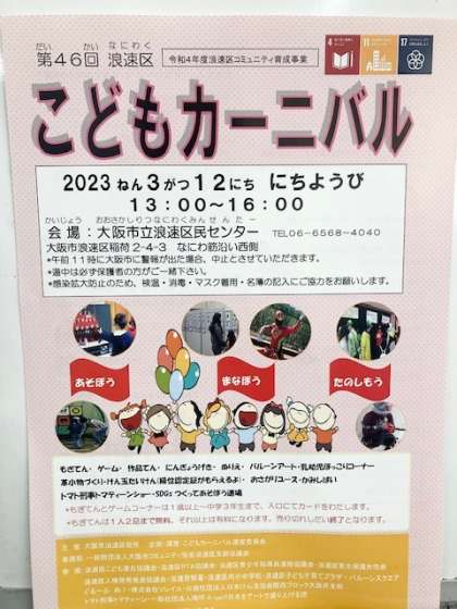 3月12日(日)こどもカーニバル→こどもカーニバル