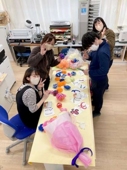 4年生の先生方が、6年生へ贈る卒業お祝いメッセージを作成中です。