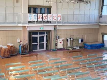 卒業式当日は、6年保護者の皆様には心苦しいのですが、1家庭2名まで、長いす1脚とさせていただいています。マスクの着用と合わせて、ご協力のほどよろしくお願いします。
