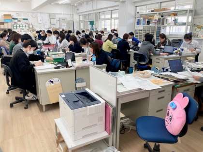 今日から令和5年度の始まりです。朝早くから教職員の皆さんが集まって、打ち合わせをしています。新学期もよろしくお願イギー。