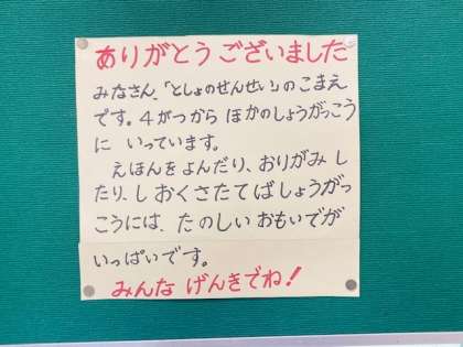 学校司書の小前先生、長い間、ありがとうございました。ますますのご活躍をお祈りします。