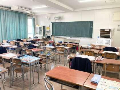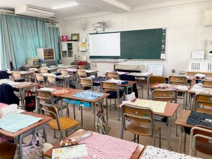 給食前の6年生の教室です。だれもいません。6年生の子どもと先生は、1年生のために給食準備を手伝ってくれています。ありがとう。本当に、頼りになります。