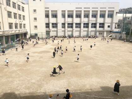 休み時間、子どもたちの笑顔がはじけています。