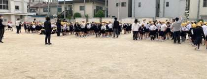 2時限目に、地震と津波を想定した避難訓練をしました。みんな、じょうずに避難の練習ができました。