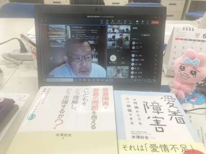 今日の放課後、「愛着形成」に関する第一人者、和歌山大学の米澤 好史教授を講師に、先生方のオンライン研修会を行いました。愛着をはじめ、子ども理解や支援について、教えていただきました。毎回、的確なアドバイスをくださり、本当にありがとうございます。