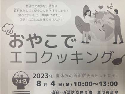 浪速区保健福祉センターなどの主催です。→おやこでエコキッキング