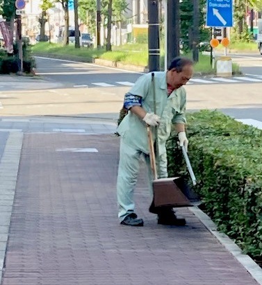 管理作業員の日野さん、学校内外の清掃をしてくださっています。