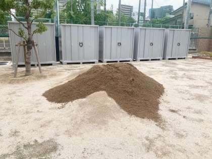業者の方が、運動場と第2グランドに山土を入れてくださいました。暑い中、ありがとうございます。