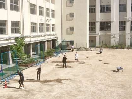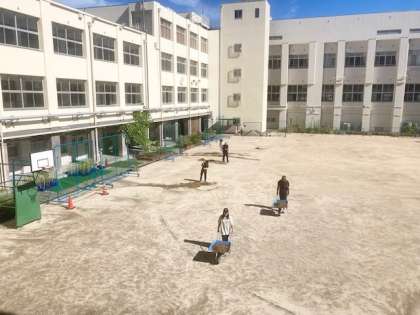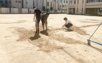 今朝早くから、教職員の皆さんが運動場のメンテナンスをしてくださっています。暑い中の作業、ありがとうございます