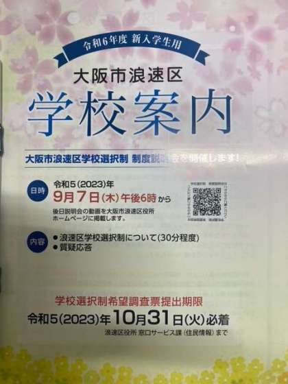 明日、9月11日(月)は、午前11時より、3階図書室で、新1年生の学校選択制にかかわる学校説明会を行います。対象は、学校選択制で塩草立葉小学校への入学を検討している方です。