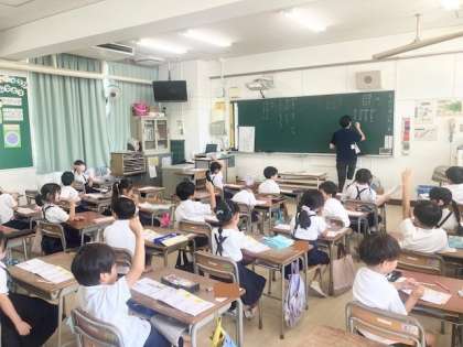 上・中 1組 教育実習の浅野さんの授業です。国語 かいがら