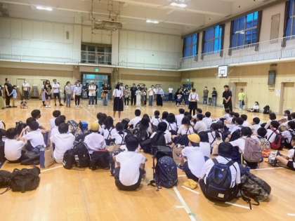 帰校式をしています。6年生の皆さん、2日間を安全に楽しく過ごすことができて、本当によかったです。保護者の皆様、お出迎え、ご協力をありがとうございました。