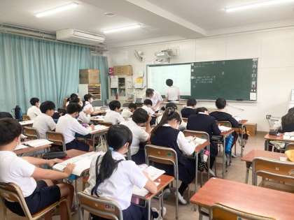 3つの少人数グループに分かれて、算数の授業「2つの量の変わり方を調べよう」をしています。