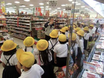 10月19日(月)、3年生は、社会科の学習を深めるため、校区内にあるスーパーマーケットの見学に行きました。