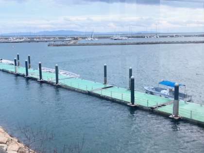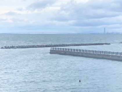 今朝6時30分、海洋センターからの景色です。関西国際空港が、遠くに見えます。