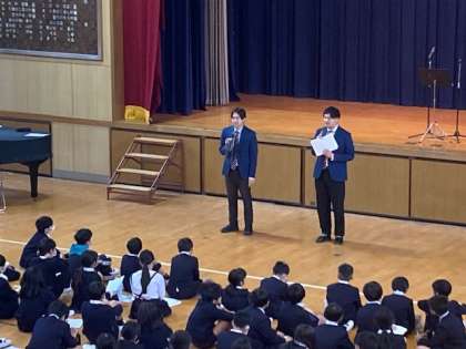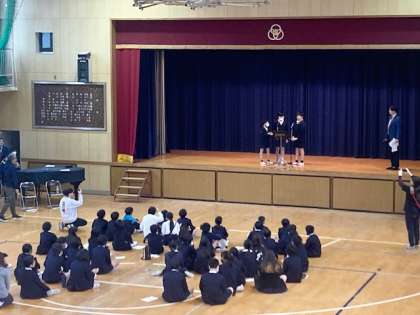 よしもと放課後クラブ漫才ワークショップを行いました。6年生全員が、講堂の舞台に上がって、漫才にチャレンジしました。