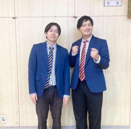 浪速区住みます芸人のチャイルドプリンスさん(左:北山水泳さん、右:ラストオーダー織田さん)がお越しくださいました。