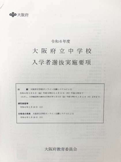 大阪府立中学校(咲くやこの花、水都国際、富田林)の受験をお考えの方は、実施要項および大阪府のHPを参考にしてください。