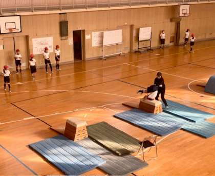 上 2組 体育 とび箱「台上前転」