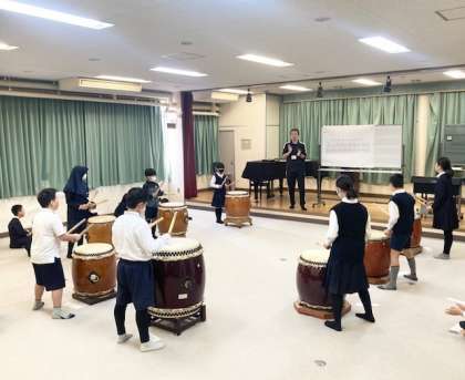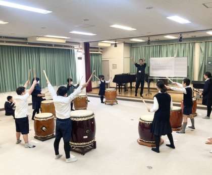 中・下 3組 人権総合学習「たいこの実演」