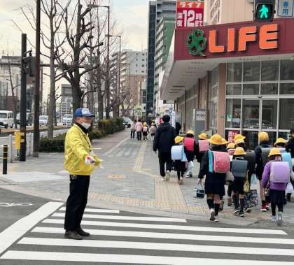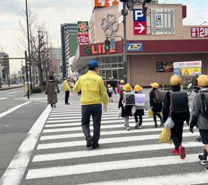 今朝の稲荷交差点です。地域の見守り隊の皆様、子どもたちを引率してくださる地域、保護者の皆さま、いつもありがとうございます。