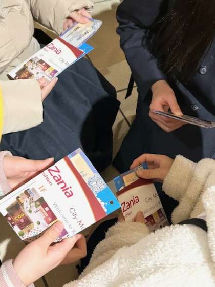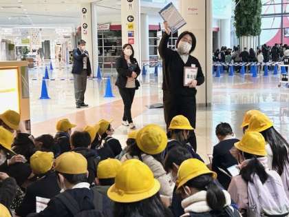 予定通り、キッザニア甲子園に到着。説明を受けています。