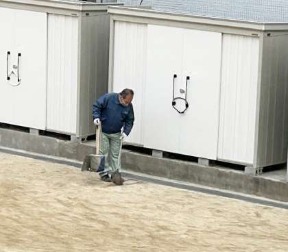管理作業員の日野さん。朝早くからの作業、ありがとうございます。