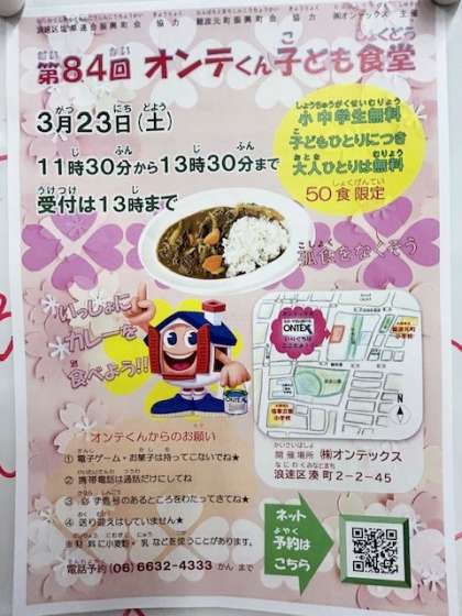 3月23日(土)11:30〜13:30 オンテくん子ども食堂が行われます。→オンテくん子ども食堂