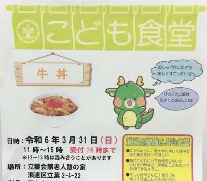 3月31日(日)立葉会館でこども食堂をしてくださいます。