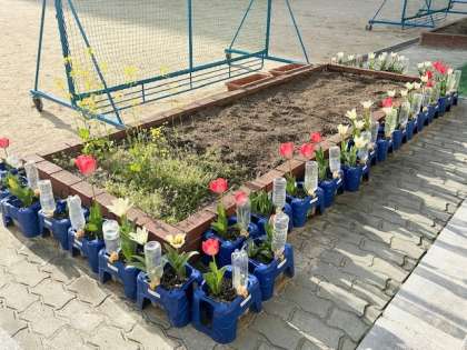 1年生が植えたチューリップを見ていると、成長の早さに驚きました。