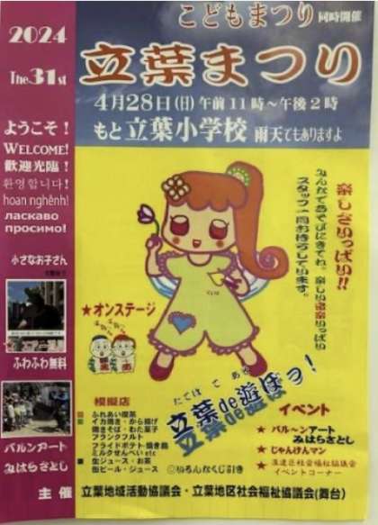 4月28日(日) 午前11時から午後2時まで、立葉小学校に集まろう。