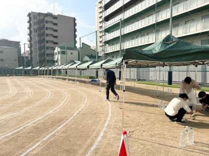 今朝7時前から、教職員の皆さんが準備をしています。昨日の雨の影響はなく、第2グラウンドは大丈夫です。